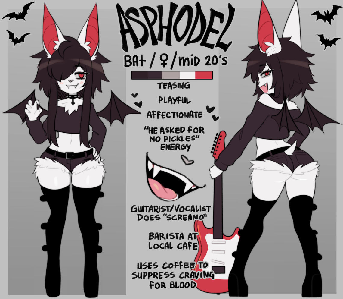 Early 20s | 5'0 | FemaleOutgoing/teasing goth who works at a local coffee shop. Plays guitar and sings in her free time, exceptional at screamo. Playful, addicted to caffeine, may or may not bite you.Fanart: Yes!